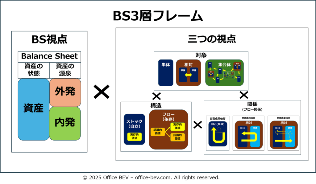 筆者が気づいた世界の見方を変える「三つの視点」、それは「虚構」「対象領域」「関係」。一方、現在の経済・財政・金融理論、そして企業経営の現場で使われているバランスシート(BS)には、「二極構造」「二層構造」という特徴がある。